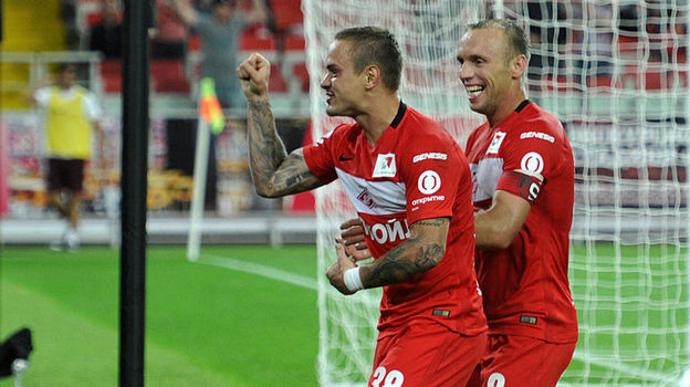 Полузащитник Денис Глушаков и защитник Андрей Ещенко проводят тренировку с основой "Спартака".