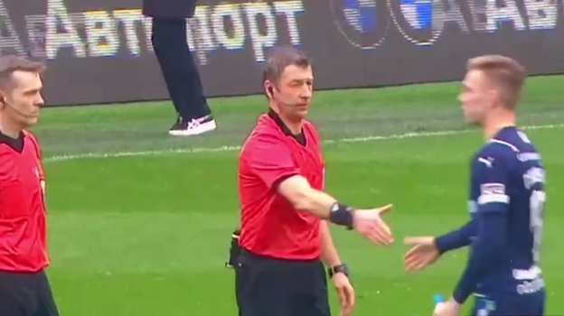 После финального свистка игрок пошел к судье и протянул ему руку.