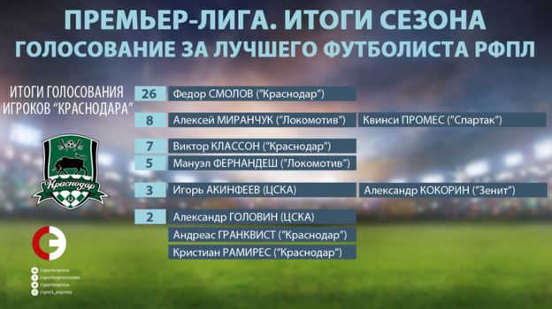 Ниже – как голосовали игроки "Краснодара". Объявление победителя голосования – сегодня на сайте "СЭ".