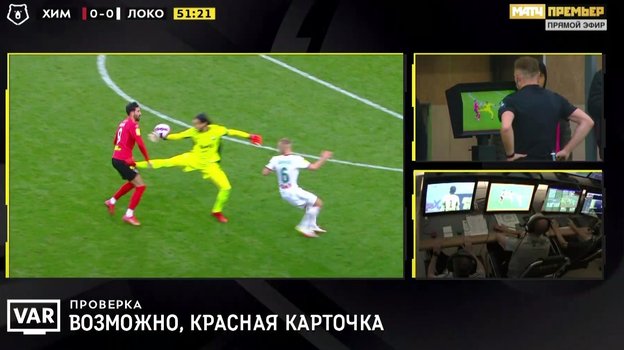 На 49-й минуте матча 9-го тура Тинькофф чемпионата России «Химки» — «Локомотив» ошибся арбитр Алексей Амелин, не удалив вратаря гостей Гильерме. На помощь судье пришли видеоассистенты Владимир Москалев и Максим Гаврилин. Они провели проверку, вмешались в действия рефери и предложили ему посмотреть видеозапись. После этого Амелин исправил свою ошибку и наказал голкипера красной карточкой за то, что тот ударил Кемаля Адеми прямой ногой в область бедра. После удара на ноге нападающего остался характерный след от шипов.