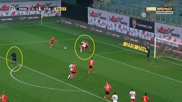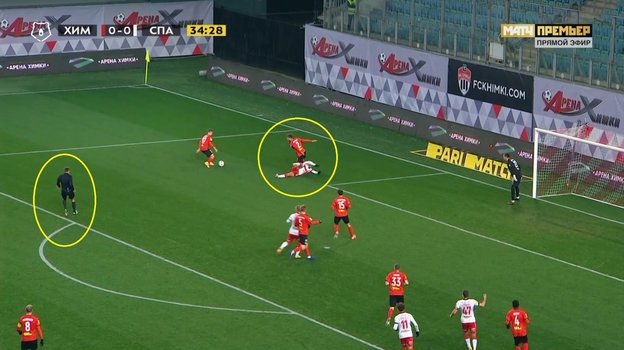 На 35-й минуте матча 11-го тура Тинькофф чемпионата России «Химки» — «Спартак» арбитр Кирилл Левников не назначил 11-метровый удар в ворота хозяев поля, когда в их штрафной площади в единоборстве с Арсением Логашовым упал Эсекиэль Понсе.