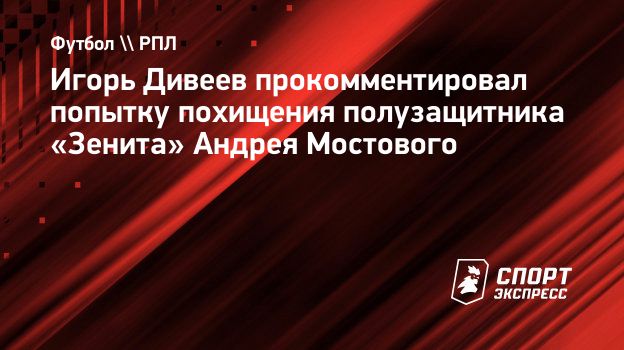 Защитник сборной России и ЦСКА Игорь Дивеев в интервью «СЭ» прокомментировал попытку похищения полузащитника «Зенита» Андрея Мостового.
