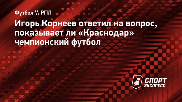 Бывший спортивный директор «Зенита» Игорь Корнеев в интервью «СЭ» ответил на вопрос, показывает ли «Краснодар» чемпионский футбол.