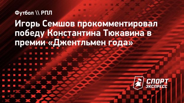 Семшов — о признании Тюкавина «Джентльменом года»: «В скандалах не замешан, с арбитрами не спорит...»