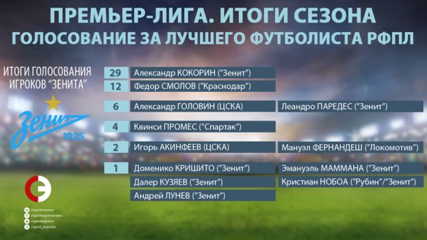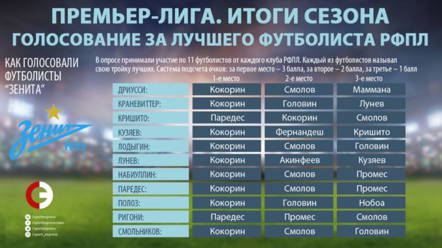 Ниже – как голосовали игроки "Зенита". Объявление победителя голосования – в воскресенье на сайте "СЭ".