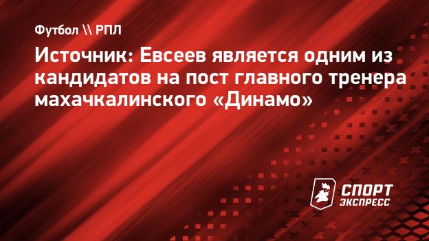 Источник: Евсеев является одним из кандидатов на пост главного тренера махачкалинского «Динамо»