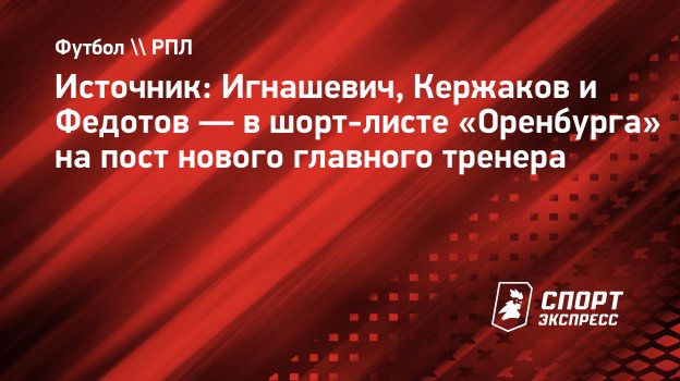 По информации источника, на место претендуют Александр Кержаков, Владимир Федотов и Сергей Игнашевич. Вариант с Игнашевичем больше всего привлекает руководство «Оренбурга».