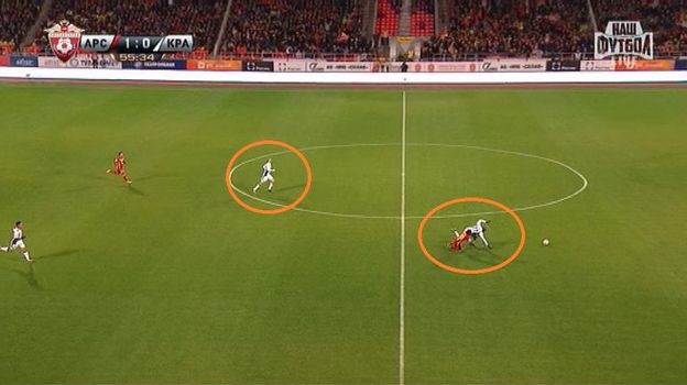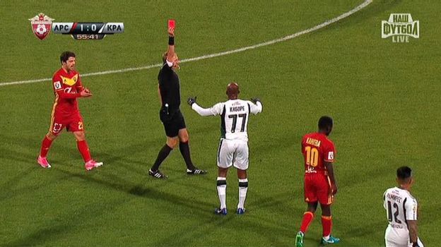 На 55-й минуте матча 12-го тура чемпионата России "Арсенал" – "Краснодар" правильное решение принял арбитр Сергей Иванов, удалив футболиста гостей Шарля Каборе. Краснодарец, не пытаясь сыграть в мяч, сбил убегавшего к воротам Эванса Кангву?, лишив того явной возможности забить гол. По правилам в таких случаях следует наказывать нарушителя красной карточкой. (Александр БОБРОВ)