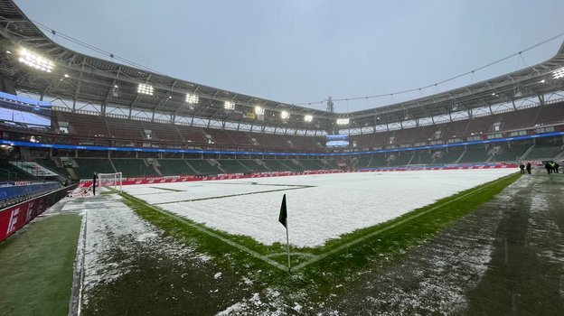 Поле стадиона «РЖД Арена», на котором состоится игра, полностью засыпало снегом.