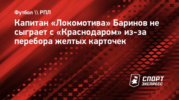 Полузащитник и капитан «Локомотива» Дмитрий Баринов пропустит матч 16-го тура РПЛ с «Краснодаром».