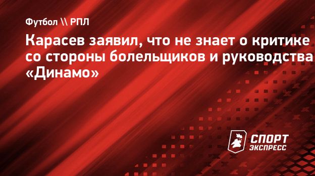 Карасев заявил, что не знает о критике со стороны болельщиков и руководства «Динамо»