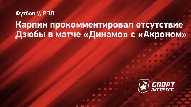 Главный тренер московского «Динамо» Валерий Карпин перед матчем против «Акрона» В 15-м туре РПЛ прокомментировал невключение форварда тольяттинцев Артема Дзюбы в заявке на игру.