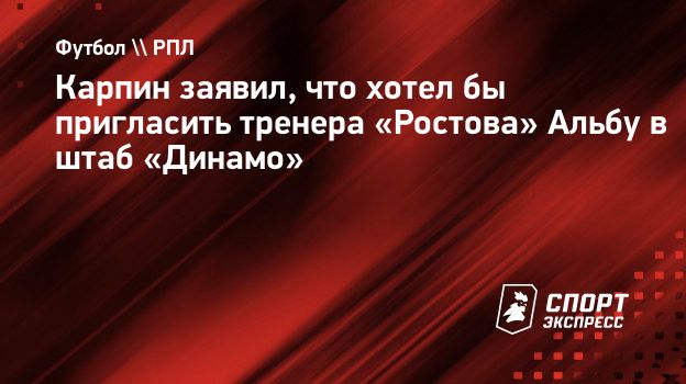 Главный тренер московского «Динамо» Валерий Карпин признался, что хотел бы пригласить в тренерский штаб команды главного тренера «Ростова» Джонатана Альбу.
