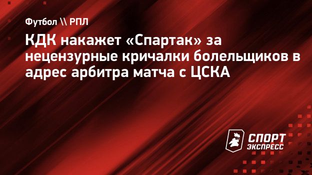 КДК накажет «Спартак» за нецензурные кричалки болельщиков в адрес арбитра матча с ЦСКА