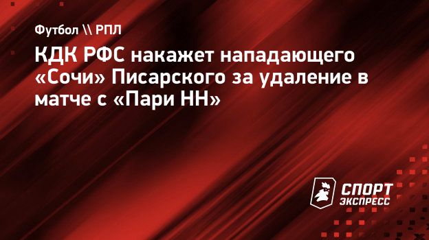 КДК РФС накажет нападающего «Сочи» Писарского за удаление в матче с «Пари НН»