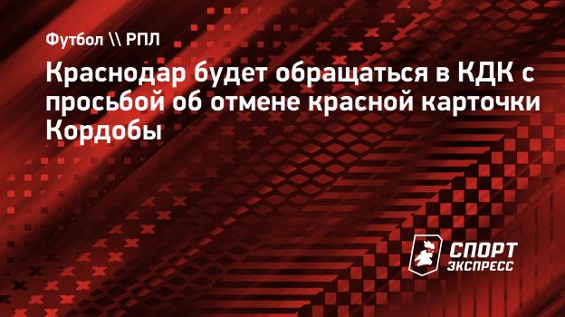 Главный тренер «Краснодара» Мурад Мусаев на пресс-конференции после матча 7-го тура РПЛ с ЦСКА (1:1) анонсировал, что клуб будут обращаться в КДК РФС с просьбой об отмене красной карточки форварда Джона Кордобы.