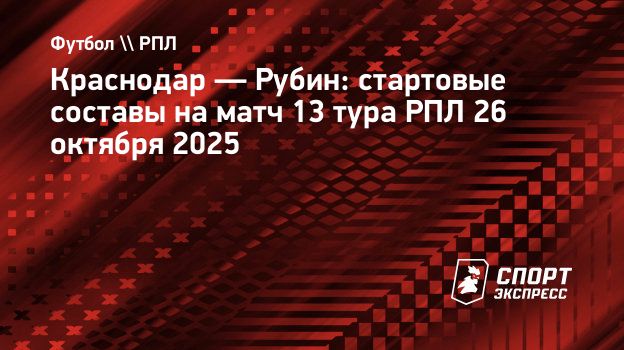 «Краснодар» и «Рубин» объявили стартовые составы на матч 13-го тура чемпионата России.