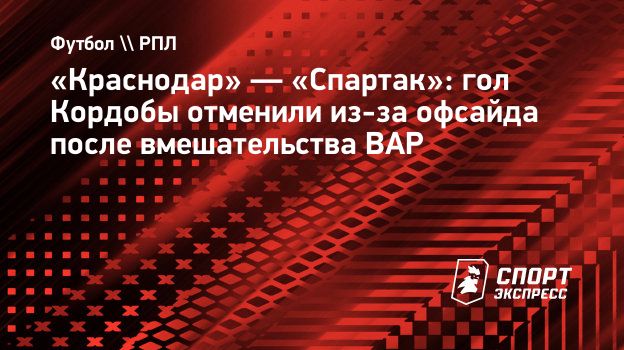 «Краснодар» — «Спартак»: гол Кордобы отменили из-за офсайда после вмешательства ВАР