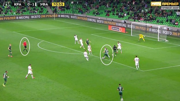 На 71-й минуте матча 11-го тура Тинькофф чемпионата России «Краснодар» — «Уфа» (1:1) арбитр Алексей Сухой ошибочно не назначил пенальти в ворота гостей после единоборства Юрия Журавлева и Гжегожа Крыховяка. Уфимский защитник с фолом остановил проход соперника, однако судья продолжил игру. Видеоарбитры Евгений Турбин и Илья Елеференко в действия рефери не вмешались или не успели вмешаться: момент был очень быстро «заигран».