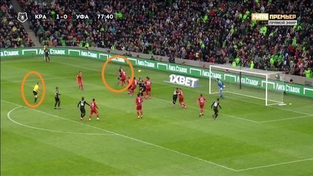 На 78-й минуте матча 20-го тура Тинькофф — чемпионата России «Краснодар» — «Уфа» (2:0) после выполнения углового удара «быками» защитник гостей Боян Йокич сыграл в мяч отставленной в сторону правой рукой, фактически парировав удар по воротам.
