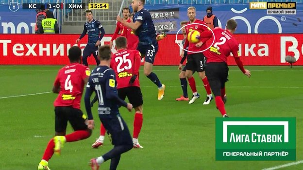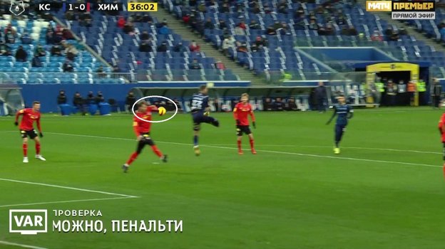 На 35-й минуте арбитр не увидел, что Карпов сыграл в мяч левой рукой, находившейся в неестественном положении. В действия рефери вмешались видеоассистенты, а затем Любимов посмотрел видеозапись. Общими усилиями был правильно назначен 11-метровый удар в ворота «Химок».