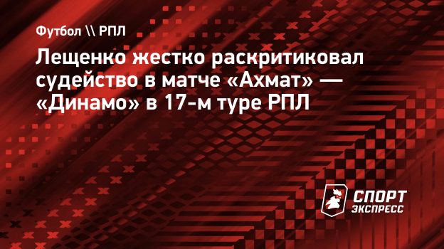 Лещенко жестко раскритиковал судейство в матче «Ахмат» — «Динамо»