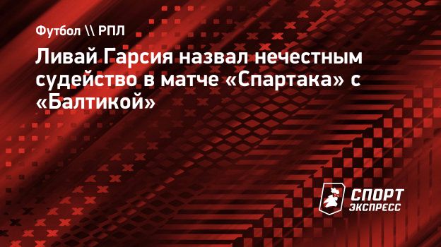Нападающий «Спартака» Ливай Гарсия раскритиковал судейство в матче против «Балтики» (0:3) во 2-м туре РПЛ.