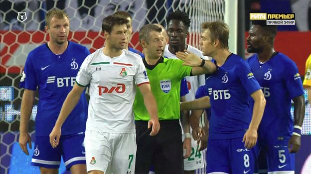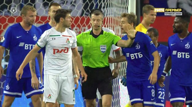 Затем хавбек "Динамо" Тетте толкнул поляка в плечо и тот влетел в арбитра Алексея Матюнина. Судья попросил поляка больше не вести себя подобным образом.