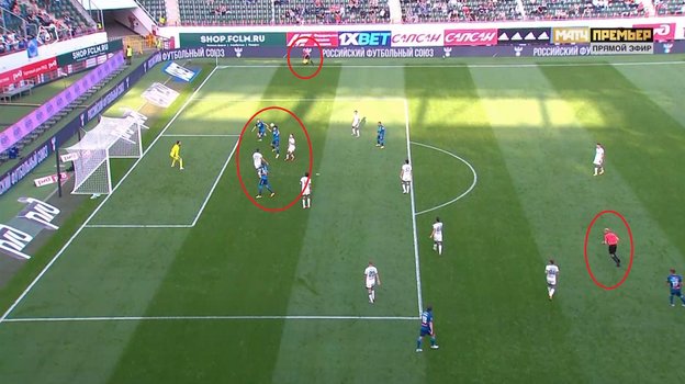 Видеоассистенты Николай Волошин и Максим Гаврилин провели соответствующую проверку, решение Москалева было подтверждено, он предложил железнодорожникам выполнить свободный удар. При этом чуть позже режиссер телетрансляции показал видеоповтор, на котором видно, что Караваев оказался за линией офсайда после того, как Сердар Азмун сделал ему передачу рукой. (Александр Бобров)