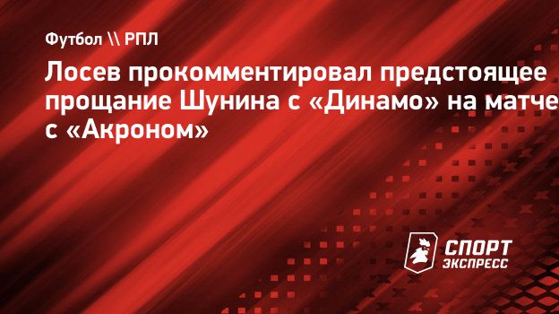 Лосев: «Шунин, безусловно, заслужил красивое прощание на родном стадионе»