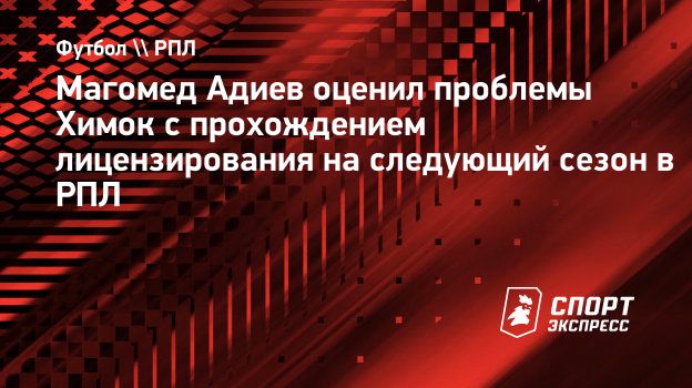 Главный тренер «Химок» Магомед Адиев прокомментировал «СЭ» проблемы клуба с прохождением лицензирования на следующий сезон в РПЛ.