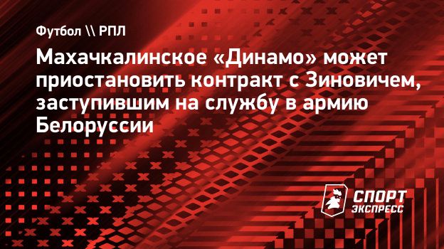 Махачкалинское «Динамо» может приостановить контракт с Зиновичем, заступившим на службу в армию Белоруссии