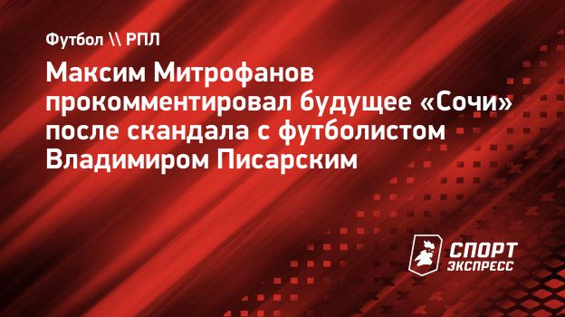 Митрофанов — о скандале с Писарским: «Нет оснований полагать, что «Сочи» не сыграет в РПЛ»
