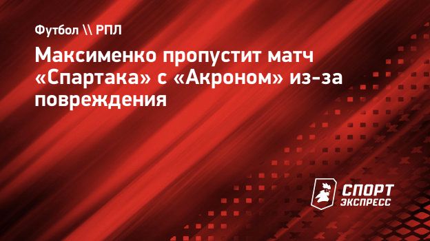 Максименко пропустит матч «Спартака» с «Акроном» из-за повреждения
