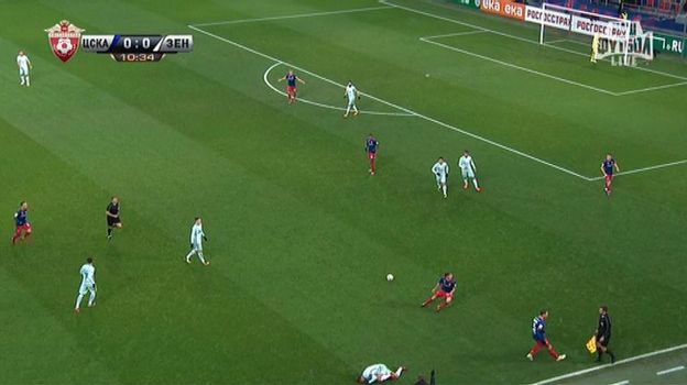 Началось все с грубого фола Мариу Фернандеса, который дважды прямой ногой угодил в ногу Доменико Кришито. Первый ассистент Дмитрий Березнев моментально зафиксировал фол и дал сигнал флажком арбитру Михаилу Вилкову.