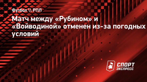 Матч между «Рубином» и «Войводиной» отменен из-за погодных условий