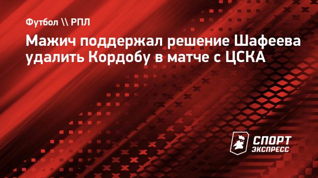 Руководитель департамента судейства и инспектирования РФС Милорад Мажич в интервью «СЭ» поддержал решение арбитра Рафаэля Шафеева удалить форварда «Краснодара» Джона Кордобу в матче 7-го тура РПЛ против ЦСКА.