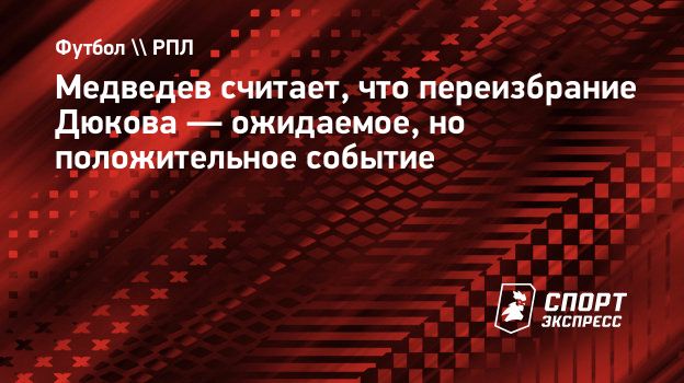 Председатель правления «Зенита» Александр Медведев прокомментировал переизбрание Александра Дюкова на пост президента РФС.