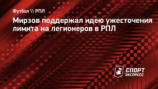 «Правильно, что хотят новый лимит сделать. Понятно, что выгоднее привозить иностранцев. Но у руководства нашего спорта посыл в том, чтобы играли наши футболисты. И это правильно. Лучше, чтобы наши пацаны играли. Ничем не хуже они. Есть такие иностранцы, как Кордоба, Вендел, — качественные. Но посмотрите на половину легионеров в РПЛ. Недавно видео мне показывали с матча «Пари НН», там парень просто привез два гола в одной игре. И вот такие футболисты играют... А почему своим бы не доверять?» — сказал Мирзов «СЭ».