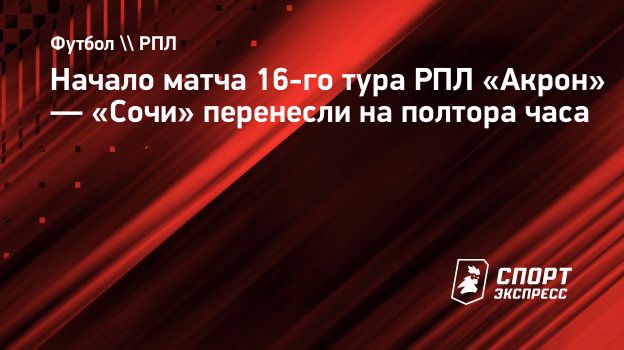 Начало матча 16-го тура РПЛ «Акрон» — «Сочи» перенесли на полтора часа