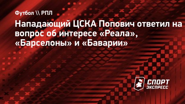 Нападающий ЦСКА Попович ответил на вопрос об интересе «Реала», «Барселоны» и «Баварии»