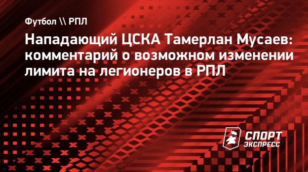 Нападающий ЦСКА Тамерлан Мусаев в разговоре с «СЭ» высказался о возможном изменении лимита на легионеров в российском футболе.