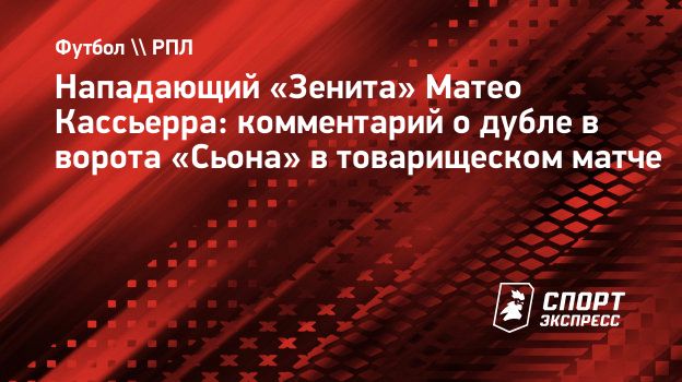 Нападающий «Зенита» Матео Кассьерра прокомментировал дубль в ворота «Сьона» в матче Winline Суперсерии.