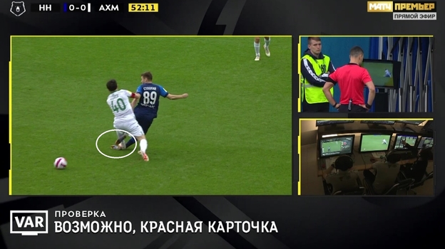 На 53-й минуте матча 28-го тура Тинькофф чемпионата России «Нижний Новгород» — «Ахмат» арбитр Ян Бобровский после вмешательства видеоассистентов Евгения Турбина и Валентина Мурашова и просмотра видеозаписи принял верное решение, отменил предупреждение, вынесенное Ризвану Уциеву, показал капитану гостей красную карточку и удалил его с поля.