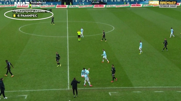 На экране телевизора появилось сообщение, что желтую карточку получил краснодарец Кристиан Рамирес. Об этом сказал и комментатор.