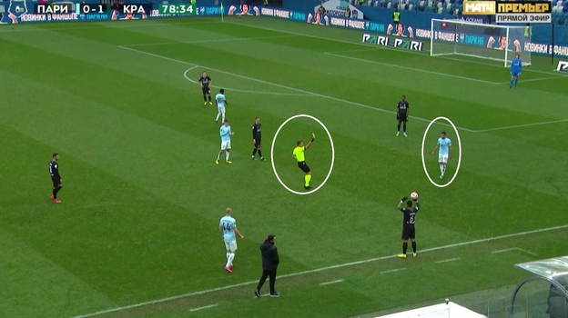 Но в послематчевом протоколе указано, что предупреждение вынесено краснодарцу Егору Сорокину.