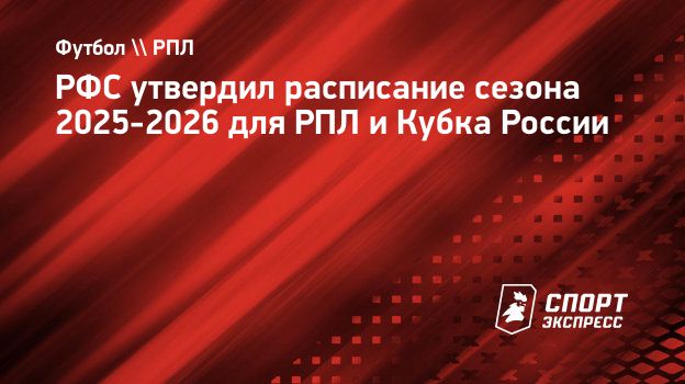 РФС утвердил расписание сезона-2025/26 для РПЛ и Кубка России
