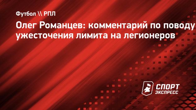 Бывший главный тренер «Спартака» Олег Романцев в интервью «СЭ» прокомментировал предложение ужесточить лимит на легионеров.
