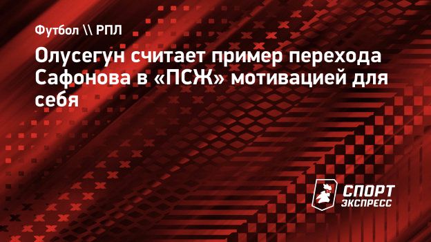 Нигерийский нападающий «Краснодара» Олакунле Олусегун заявил, что пример перехода вратаря Матвея Сафонова в «ПСЖ» является для него мотивацией.