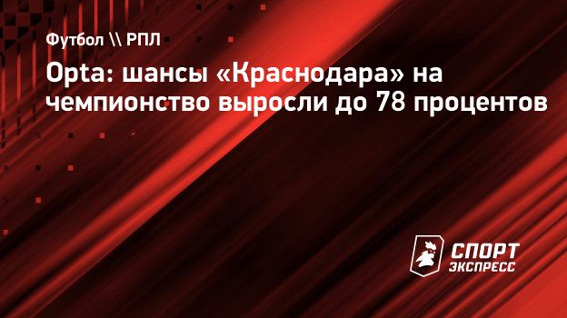 Opta: шансы «Краснодара» на чемпионство выросли до 78 процентов